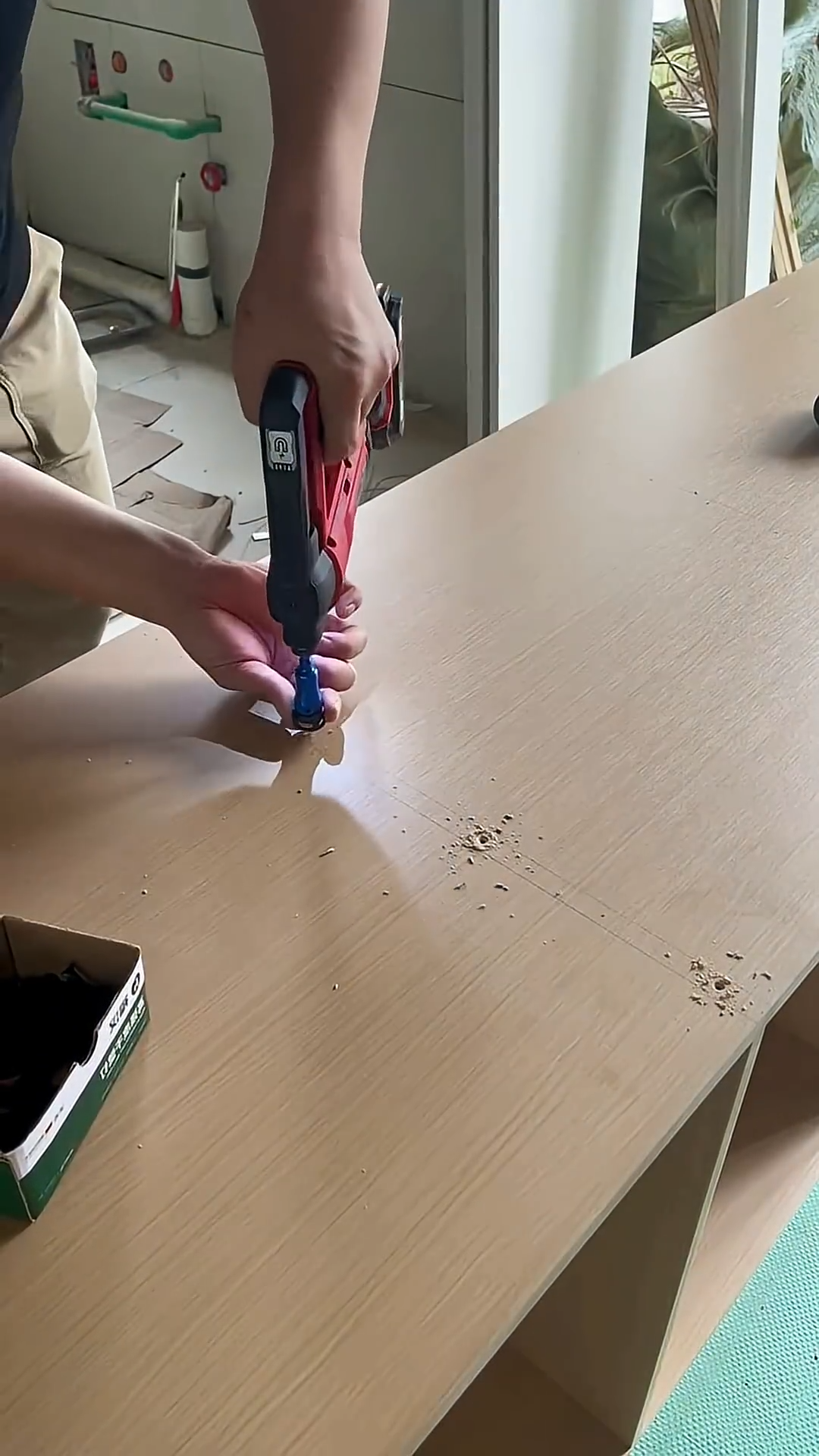 1. Planning and Preparation Mark the Location: Precisely mark the center of each hole on the table surface using a pencil and a ruler or tape measure. Use a carpenter’s square for accuracy if needed. Select the Right Bit: Choose the appropriate drill bit type and size for the desired hole and wood type. Set Drill Parameters: Speed: Generally, slower speeds for larger diameter bits and harder woods, faster speeds for smaller bits and softer woods. Start slow to prevent walking. Clutch (Torque Setting): If driving screws after drilling, set the clutch appropriately to prevent overtightening. For drilling, some drills have a dedicated drill mode that bypasses the clutch, providing full power. Install Depth Stop (If Needed): If a specific depth is required, attach and adjust a depth stop collar on the drill bit. Protect the Table: Place a sacrificial piece of scrap wood (e.g., plywood or a thicker offcut) directly underneath the drilling location. This “backer board” prevents tear-out (splintering) on the underside of the table as the drill bit exits. Secure the Workpiece (If Possible): If the table is movable, clamp it securely to a workbench to prevent movement during drilling. If it’s a large, fixed table, ensure it’s stable. 2. Positioning the Drill Pilot Hole (Optional but Recommended): For very precise holes or when starting with larger bits, use a smaller twist bit to drill a shallow pilot hole first. This helps guide the main bit accurately. Centering: Place the tip of the drill bit precisely on your marked center point. If using a brad point bit, its sharp tip will naturally engage the mark. Perpendicularity: Crucially, hold the drill perfectly perpendicular (90 degrees) to the table surface. Even a slight angle will result in a crooked hole. Many drills have a small level bubble, or you can use a small square as a visual guide. For critical holes, a drilling guide jig can be invaluable. 3. Drilling the Hole Start Slowly: Begin drilling at a very low speed. This allows the bit to properly engage the wood without walking or splintering the surface. Increase Speed: Once the bit has started to cut and is centered, gradually increase the drill speed to the appropriate setting. Apply Consistent Pressure: Apply steady, firm, and consistent downward pressure. Don’t force the drill, but also don’t let it “dance” on the surface. Let the bit do the work. Clear Chips: For deeper holes, periodically withdraw the drill bit partially (or fully for very deep holes) to clear wood chips from the flutes. This prevents the bit from overheating and clogging, which can lead to burning the wood or making a wider, rougher hole. Breakthrough (with Backer Board): As the drill bit approaches the underside of the table, reduce pressure and drill speed. Allow the bit to slowly punch through into the sacrificial backer board. This minimizes tear-out on the table’s bottom surface. 4. Post-Drilling Cleanup Remove Drill Bit: Once the hole is complete, turn off the drill and carefully withdraw the bit. Clean the Hole: Use a brush, compressed air, or a vacuum to remove any sawdust or debris from the hole and the surrounding area. Deburr Edges: Lightly sand or use a utility knife to remove any small splinters or rough edges around the entrance and exit of the hole for a clean finish. Safety Measures